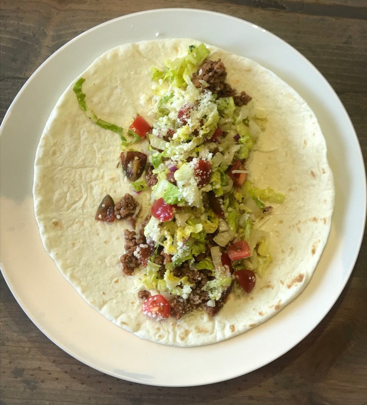 4. To assemble place a generous amount of the shredded Mozzarella cheese on each (approximately 1/4 cup on each.) Top cheese with some of the hot taco meat, followed by a mound of the Italian salad topping. Garnish with Parmesan cheese.