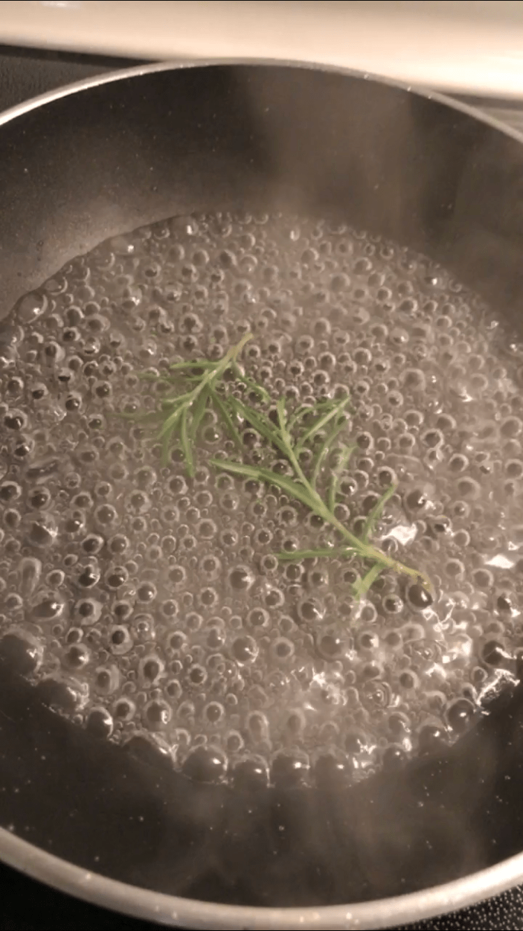 1. Bring water and sugar to a boil in a small saucepan. Stir until sugar is dissolved. Turn off heat and add rosemary sprig. Stir occasionally for 3 minutes and set aside to cool. Remove rosemary before use.