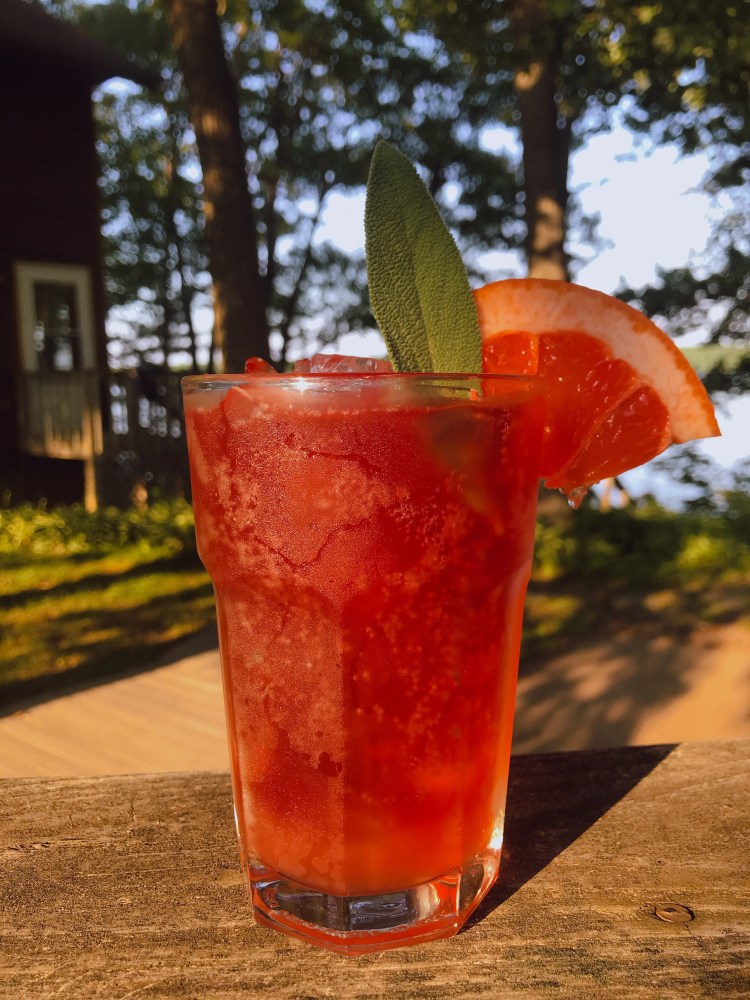 3. Garnish with grapefruit wedge and sage. Blackberries to garnish if you have them.