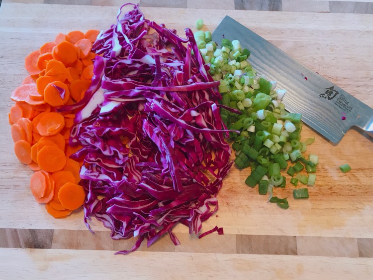 1. Heat 1 Tbsp vegetable oil over medium-high heat. Add vegetables and sauté until veggies are slightly tender. About 4 minutes. Remove veggies from pan and set aside.