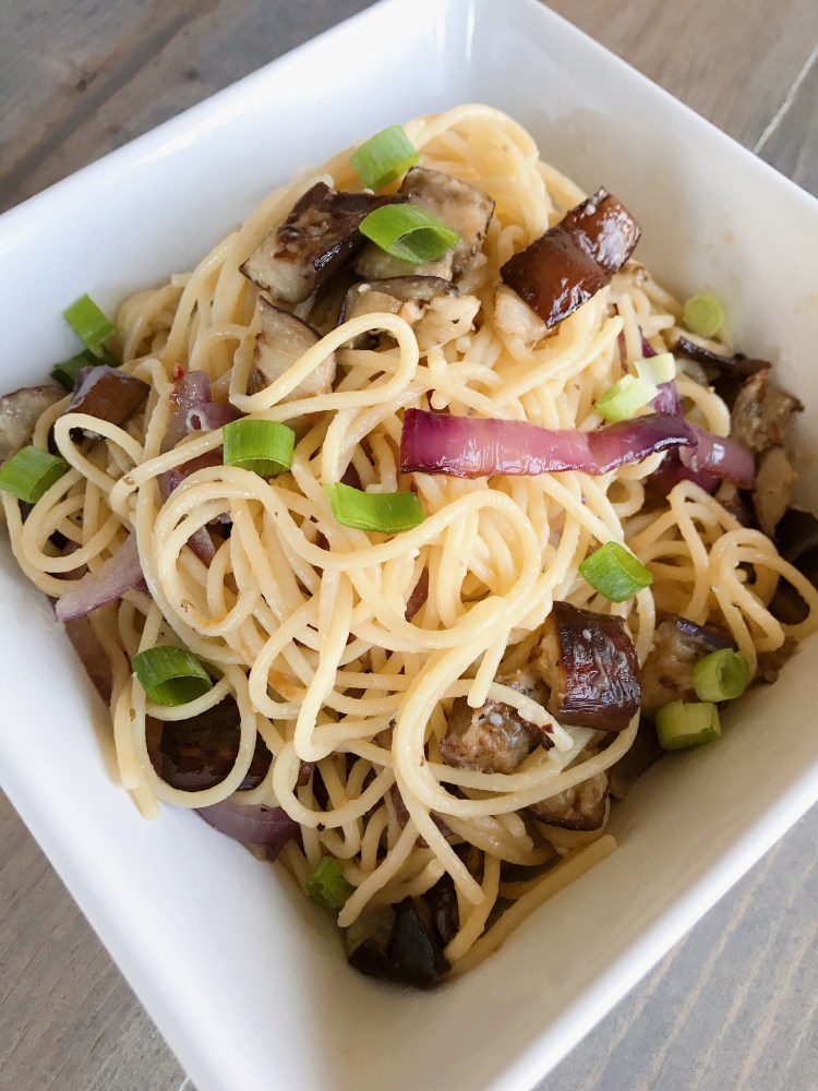 5. Gently stir in the roasted eggplant and red onion. Garnish with scallions.