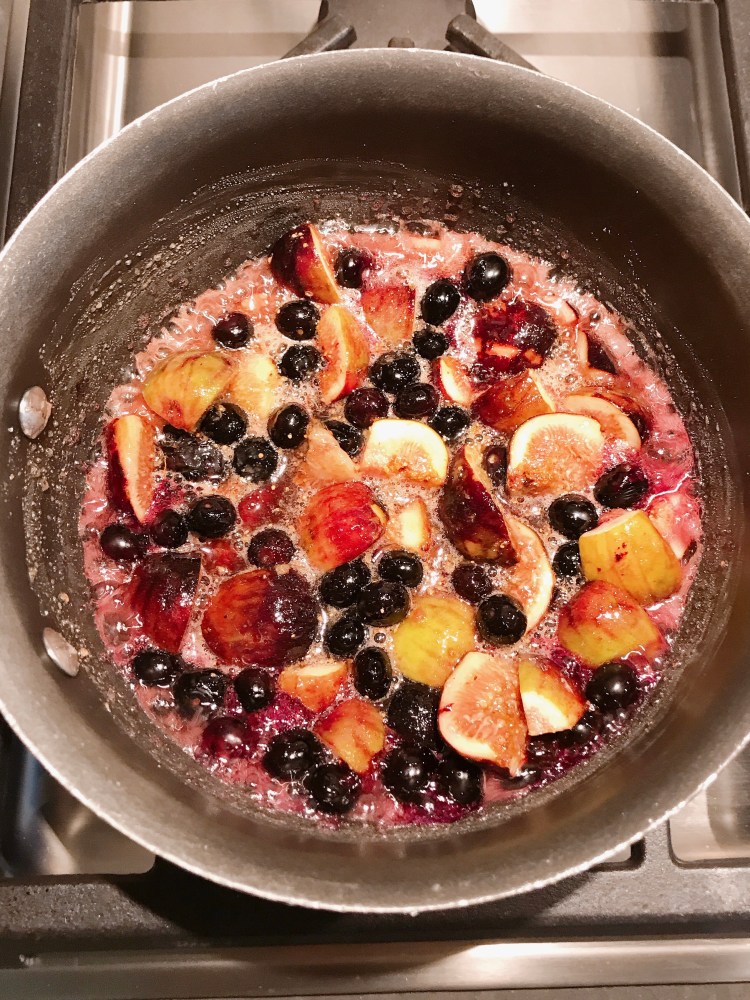 1. Put fruit in a saucepan with sugar, vinegar, spices and a pinch of salt and pepper. Heat until boiling. Reduce heat and cook for 30 minutes. Stir occasionally.