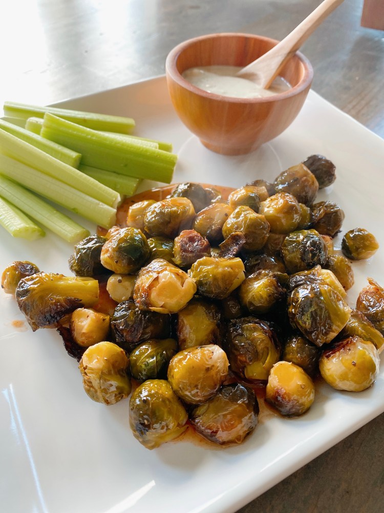 5. Remove Brussels to a serving plate. Serve with dipping sauce and celery.