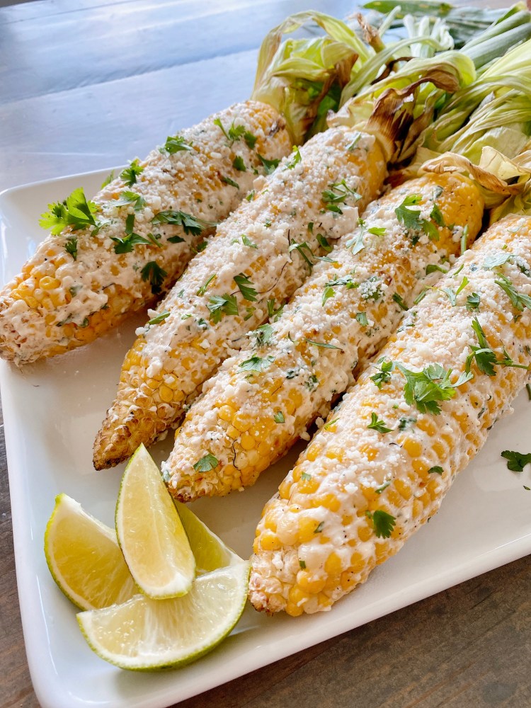 4. Transfer corn to bowl with cheese mixture and use a large spoon to evenly coat corn on all sides with mixture. Sprinkle with extra cheese and cilantro and serve immediately with lime wedges.