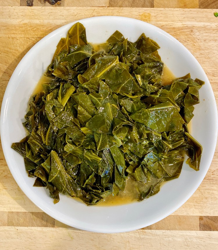 4. Reduce the heat to medium, and let the greens cook for about an hour, or until tender.